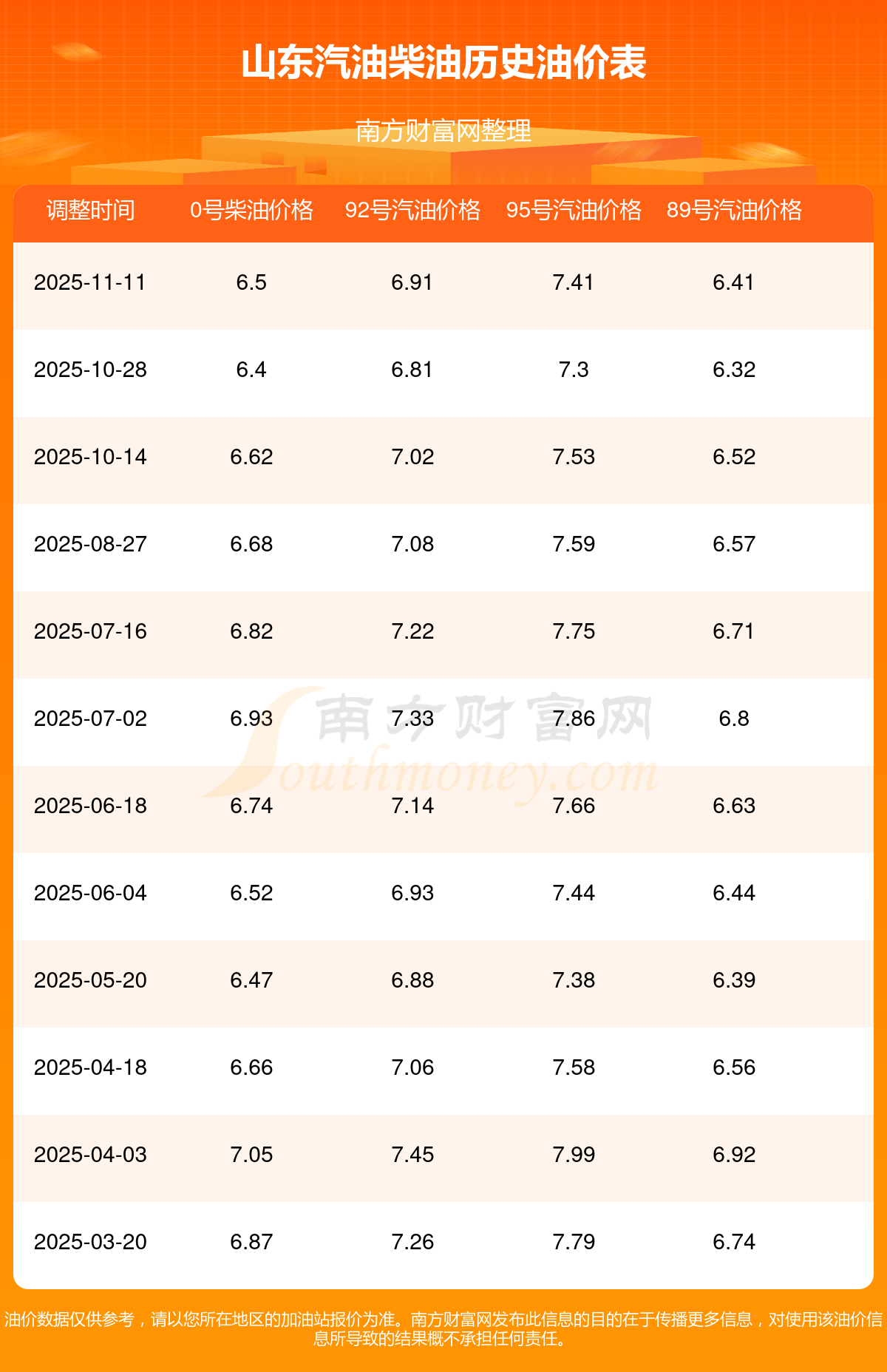 以上数据仅供参考,请以您所在地区的加油站实际售价为准。开云手机web版登录入口发布此信息的目的在于传播更多信息,对使用该油价信息所导致的结果概不承担责任。