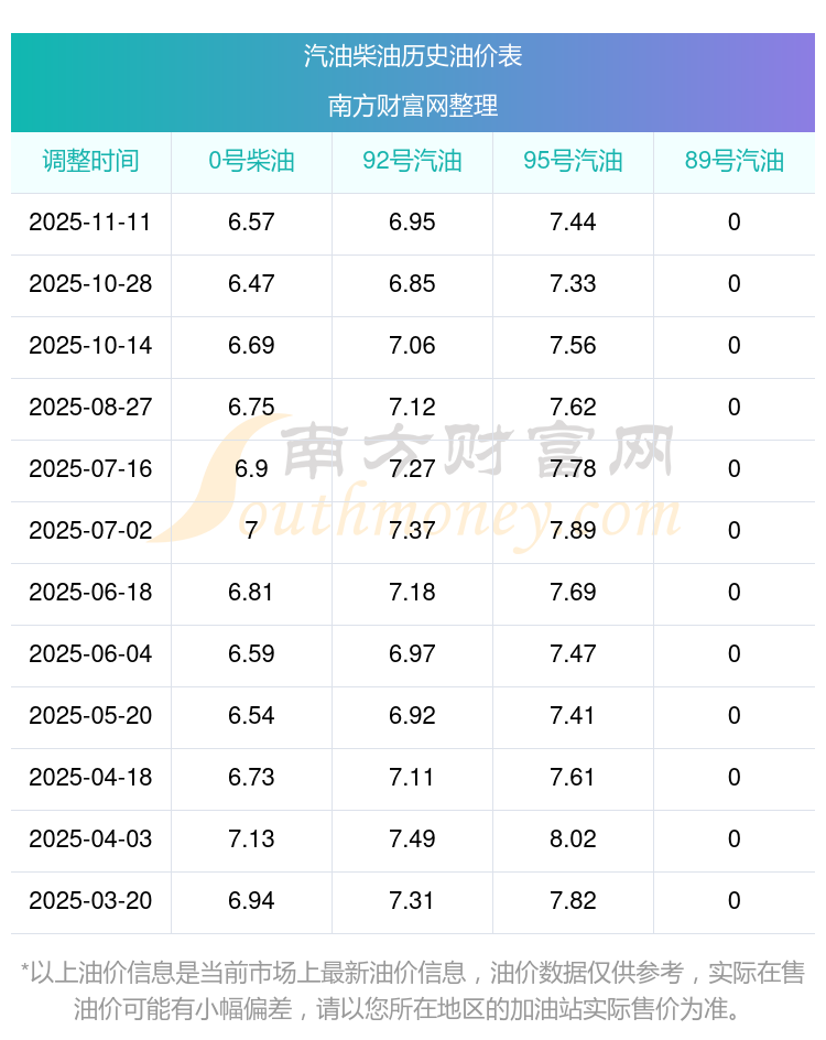天门92号汽油11月19日最新价格为6.95元每升,本轮油价调整时间为11月11日,相对上次调整时间10月28日的油价6.85元每升,共增了0.1元,增1.46%。下一轮油价调整时间11月24日24时,距离现在还有5.08天。