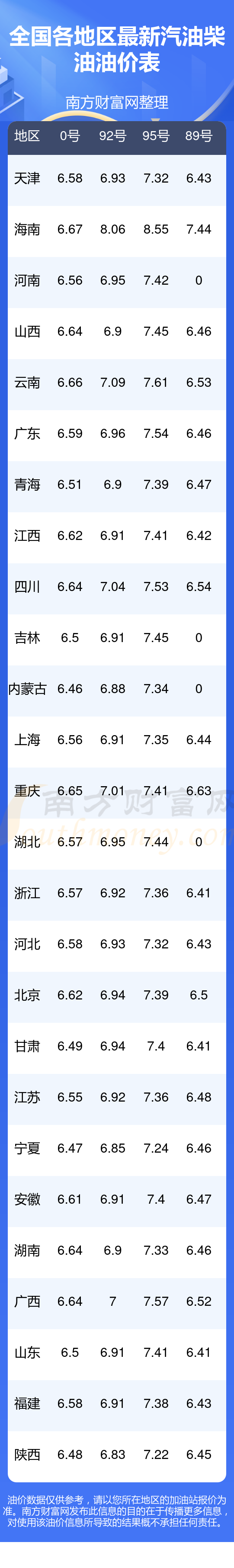 2025年11月19日全国油价调整及最新汽油价格表
