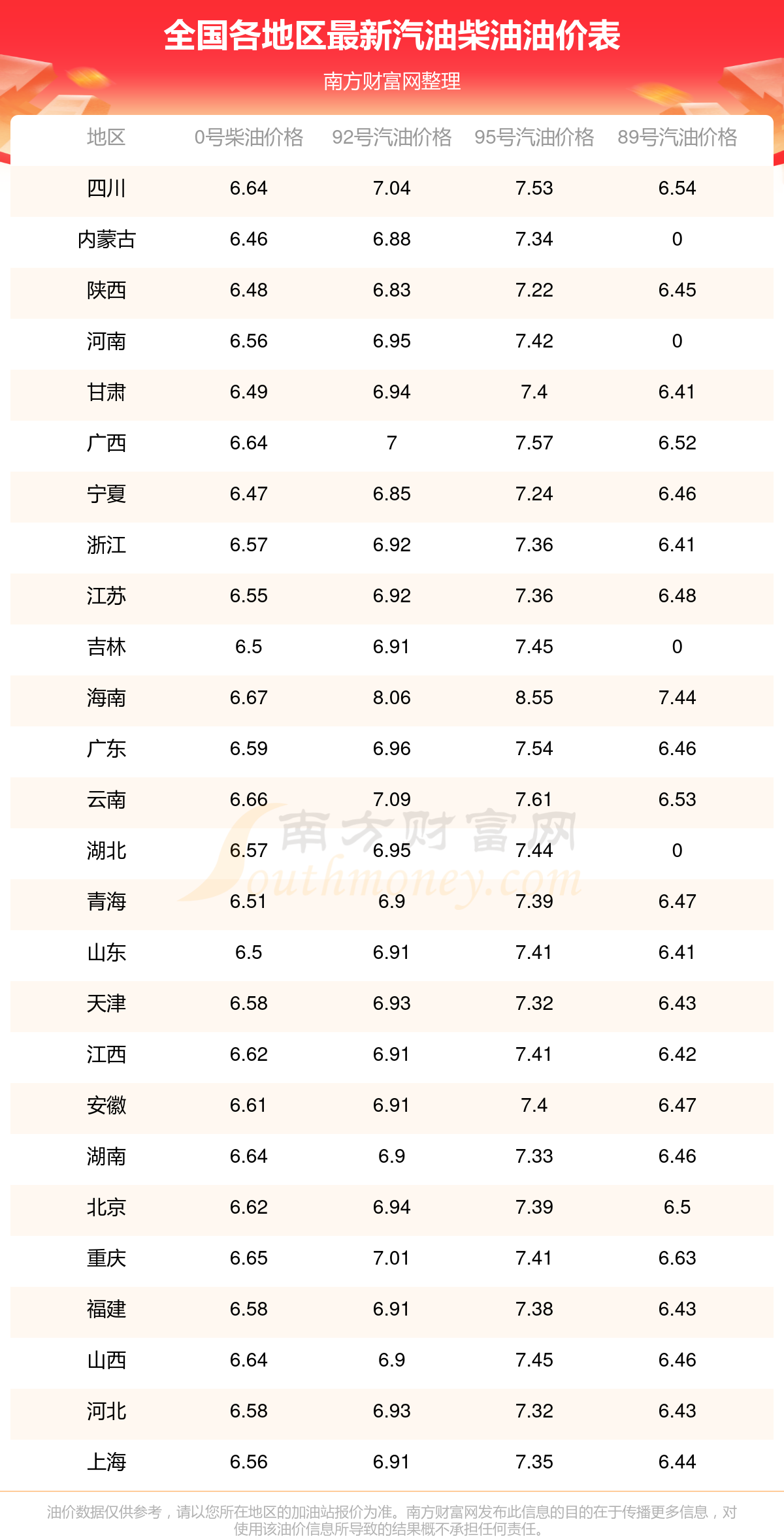 以上数据仅供参考,请以您所在地区的加油站实际售价为准。开云手机web版登录入口发布此信息的目的在于传播更多信息,对使用该油价信息所导致的结果概不承担责任。
