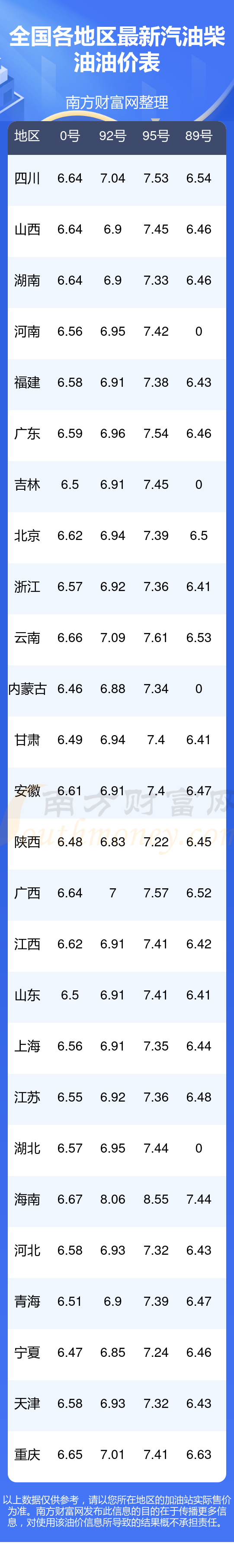 油价数据仅供参考,请以您所在地区的各加油站报价为准。