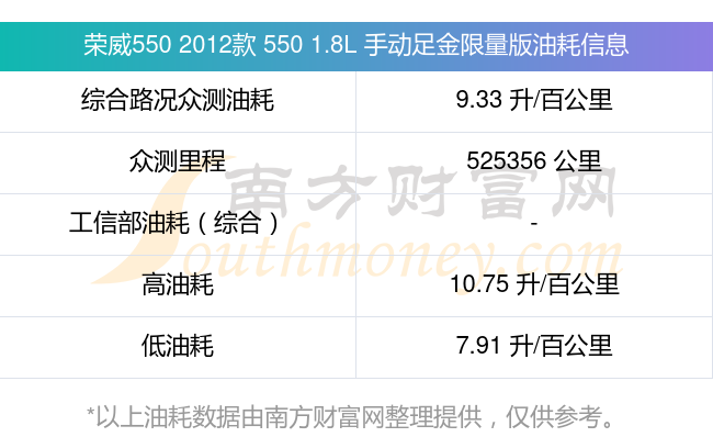 根据车主实测数据,该车型低油耗为7.91升/百公里,高油耗为10.75升/百公里,综合路况众测油耗为9.33升/百公里。