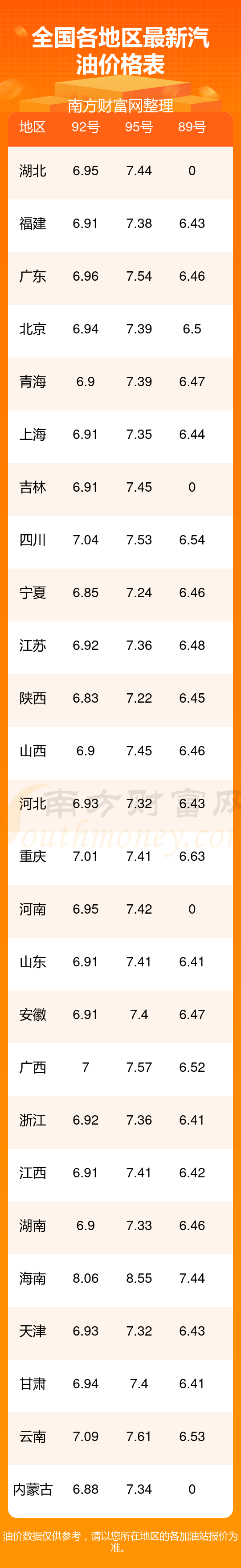 油价数据仅供参考,请以您所在地区的各加油站报价为准。