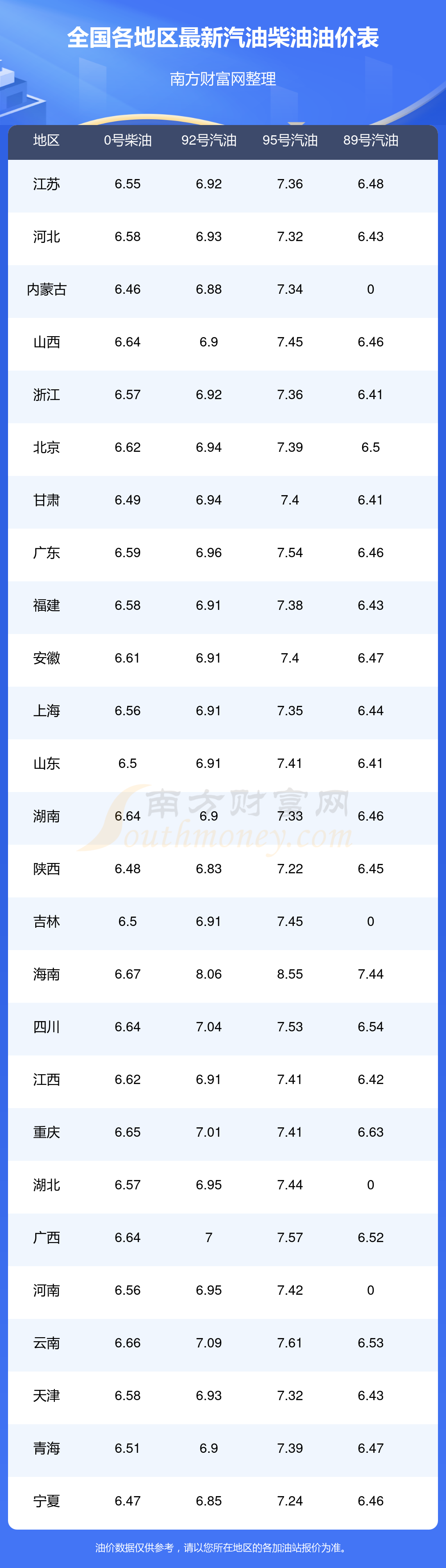 本站提供的油价数据仅供参考,具体数据以加油站报价为准。