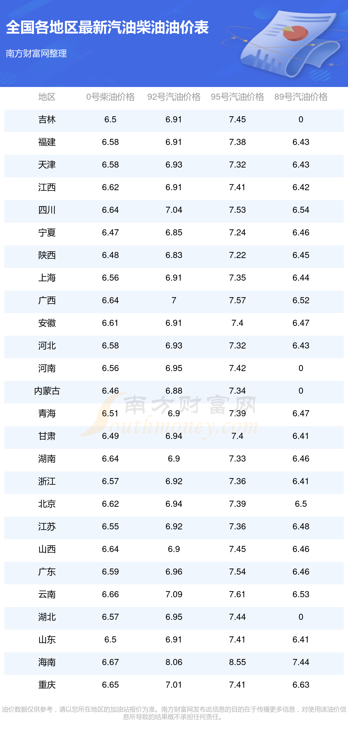 油价调整最新消息:本轮油价调整时间为11月11日 ,调整后全国的油价具体为: