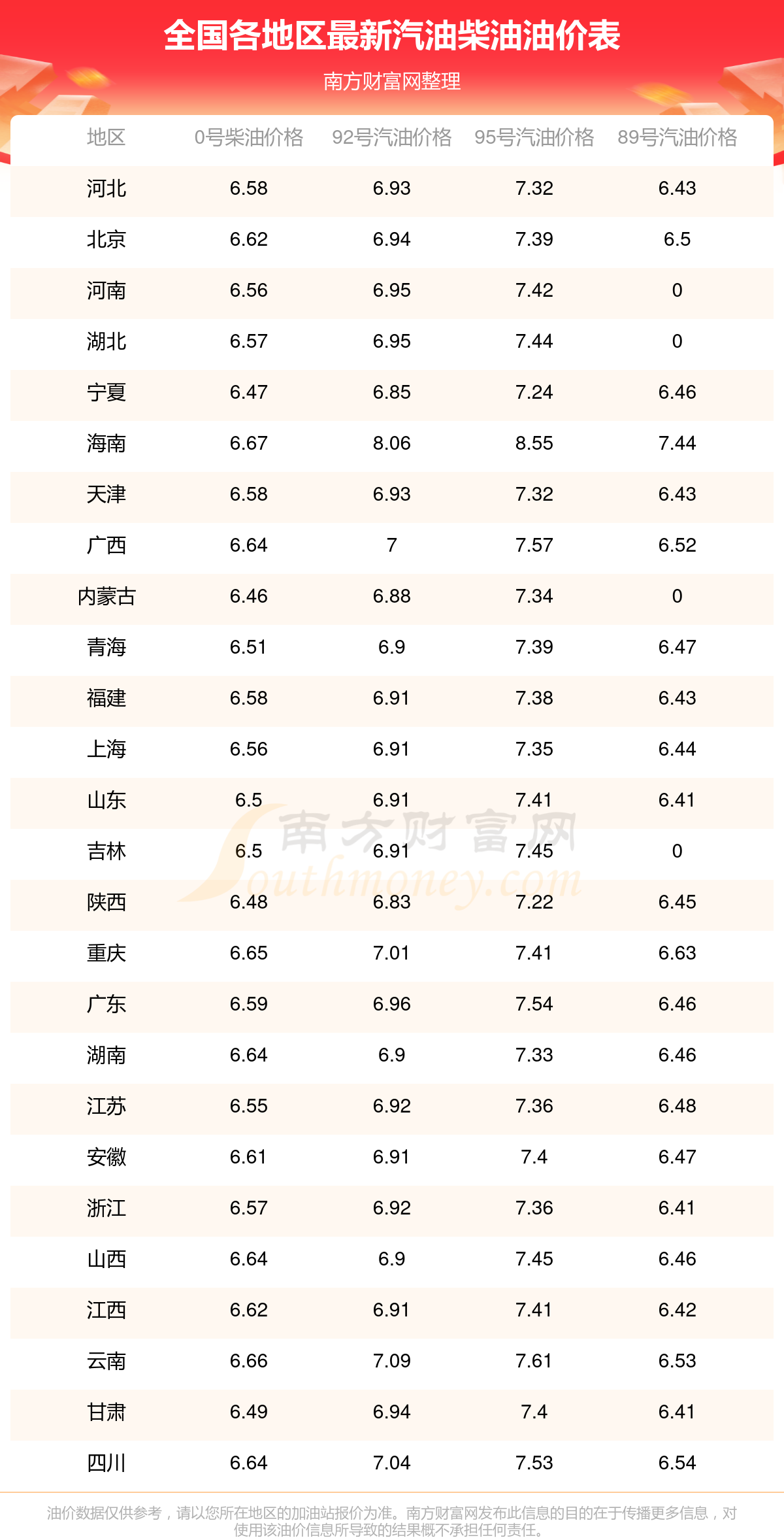 以上数据仅供参考,请以您所在地区的加油站实际售价为准。开云手机web版登录入口发布此信息的目的在于传播更多信息,对使用该油价信息所导致的结果概不承担责任。