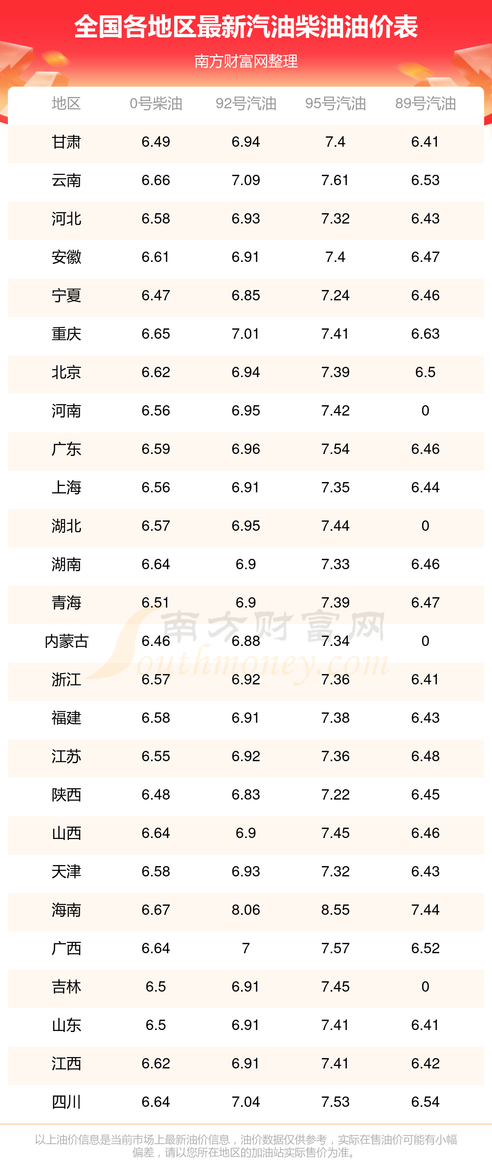 本站提供的油价数据仅供参考,具体数据以加油站报价为准。