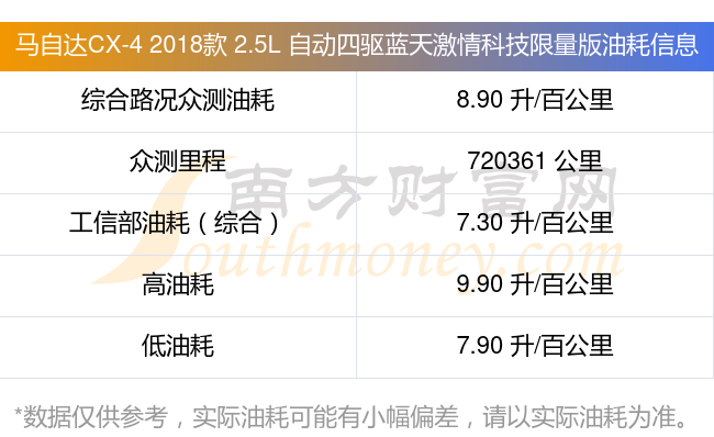 数据仅供参考,一般现实油耗与测试值会有差异,请以实际油耗为准。