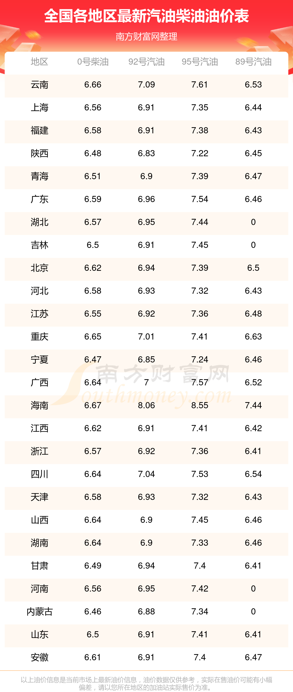 以上数据仅供参考,请以您所在地区的加油站实际售价为准。开云手机web版登录入口发布此信息的目的在于传播更多信息,对使用该油价信息所导致的结果概不承担责任。
