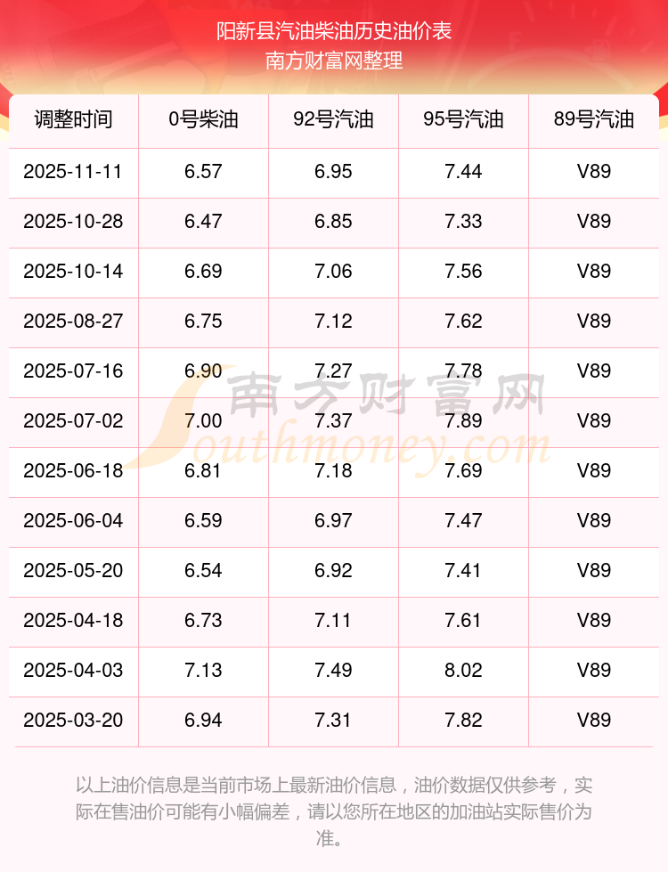 阳新县历史油价表