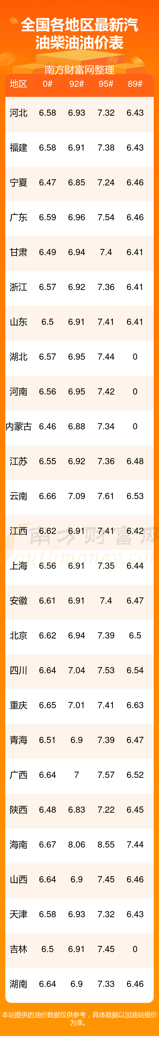 2025年11月20日全国各地汽油价格调整时间及价格一览表
