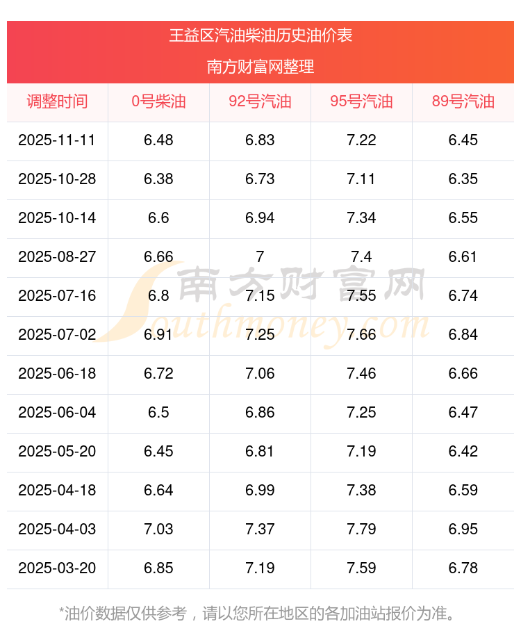 以上油价信息是当前市场上最新油价信息,油价数据仅供参考,实际在售油价可能有小幅偏差,请以您所在地区的加油站实际售价为准。