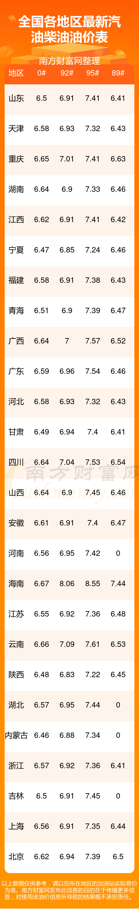 本站提供的油价数据仅供参考,具体数据以加油站报价为准。
