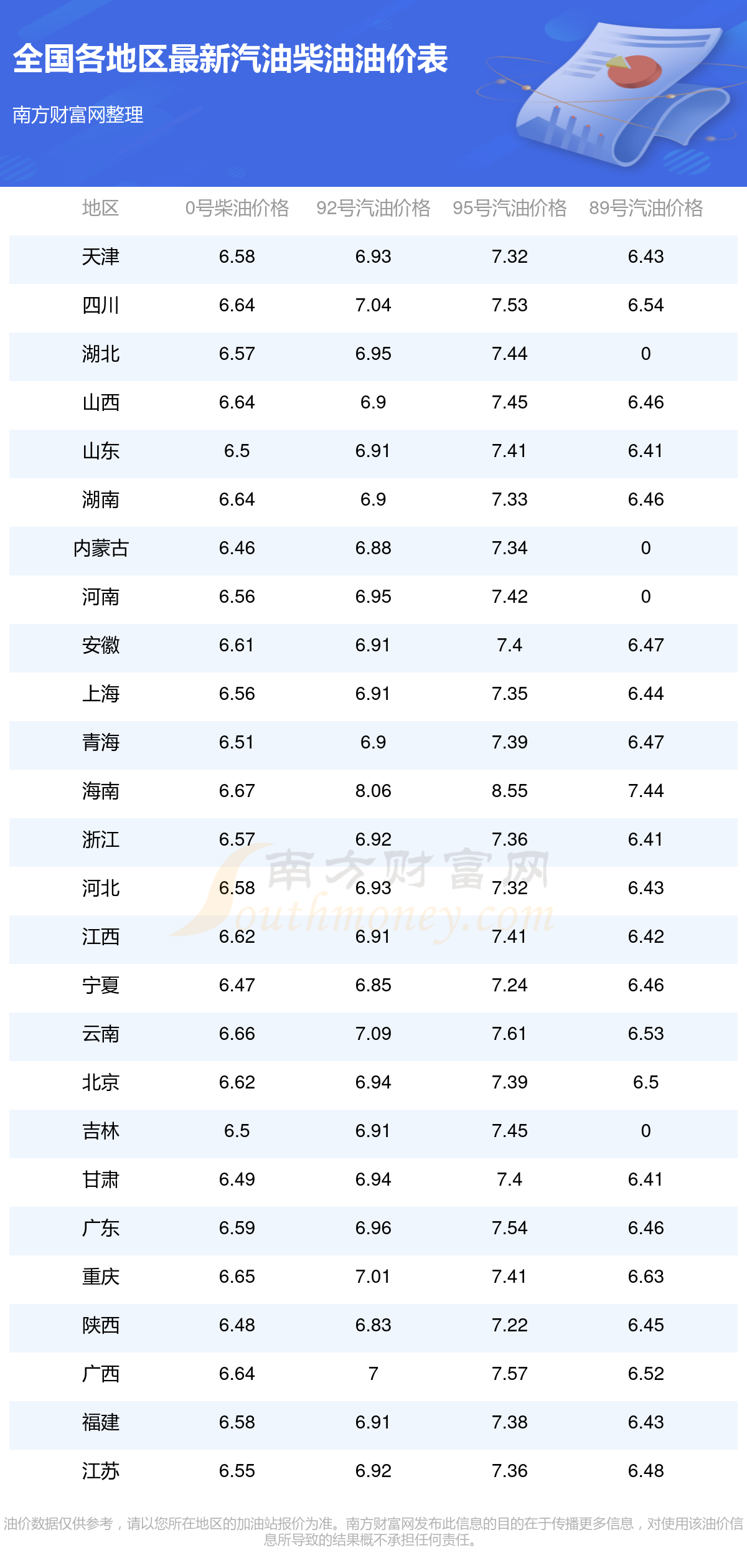 (11月20日)全国油价一览表