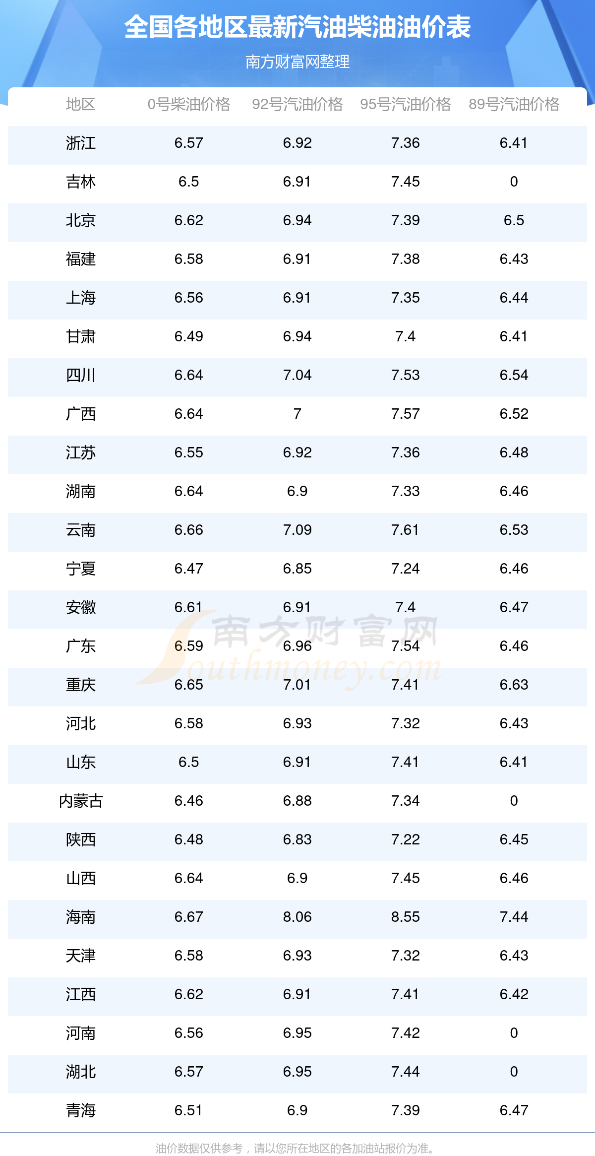 油价数据仅供参考,请以您所在地区的各加油站报价为准。