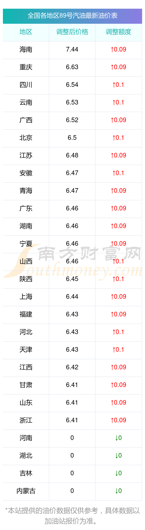 油价数据仅供参考,请以您所在地区的各加油站报价为准。