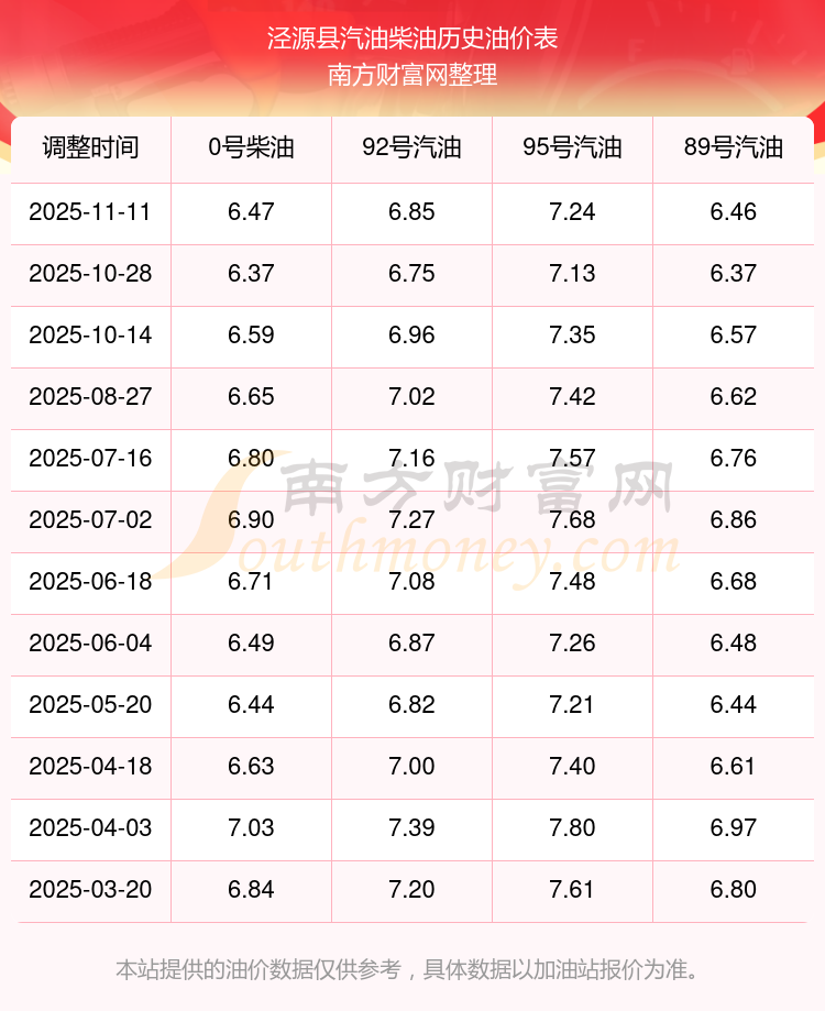 泾源县历史油价表