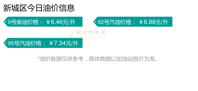 11月20日新城区汽油、柴油每升价格详情为:92号汽油为6.88元,上升了0.1元;95号汽油为7.34元,上升了0.1元;0号柴油为6.46元,上升了0.1元,本次油价调整时间为11月11日。