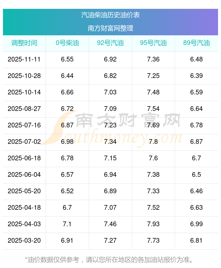 2025年92号汽油价格一览表