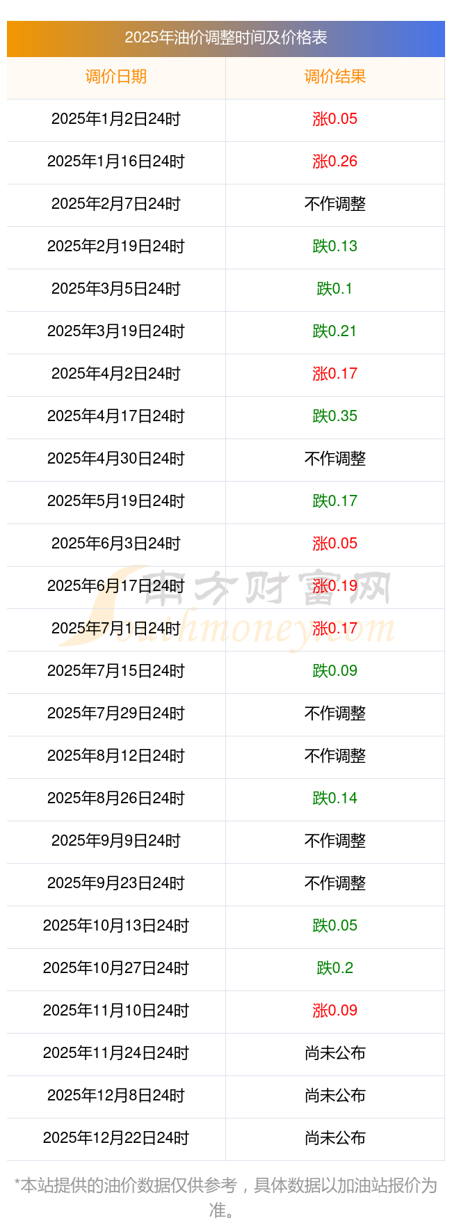 油价调整最新消息:下一轮汽油价格调整时间11月24日24时。本轮油价调整时间为11月11日 :