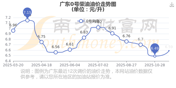 11月20日,广东0号柴油的价格是6.59元每升,本次的调整时间为11月11日,对比上次的调整涨了0.1元,涨1.541%,下次调整时间为11月24日24时,还有4.53天。