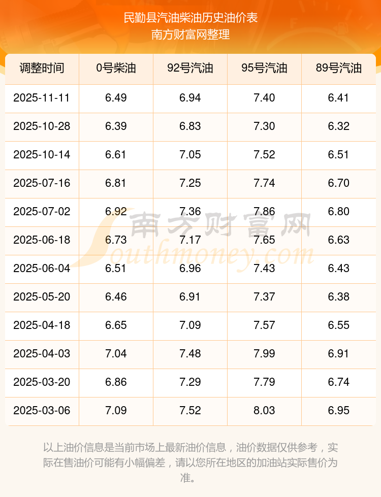 本站提供的油价数据仅供参考,具体数据以加油站报价为准。