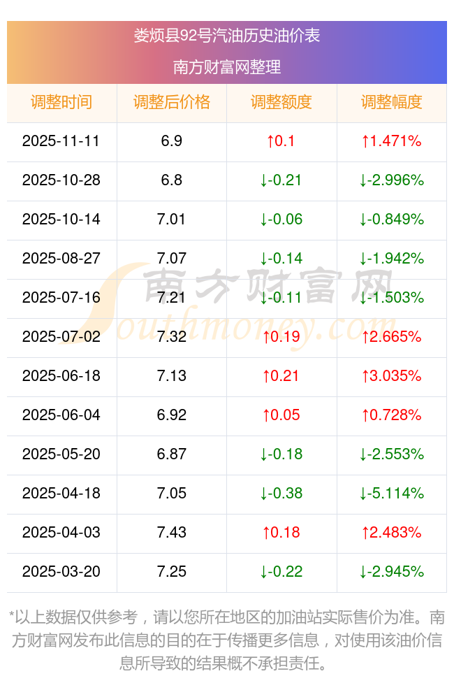 娄烦县92号汽油历史油价一览表