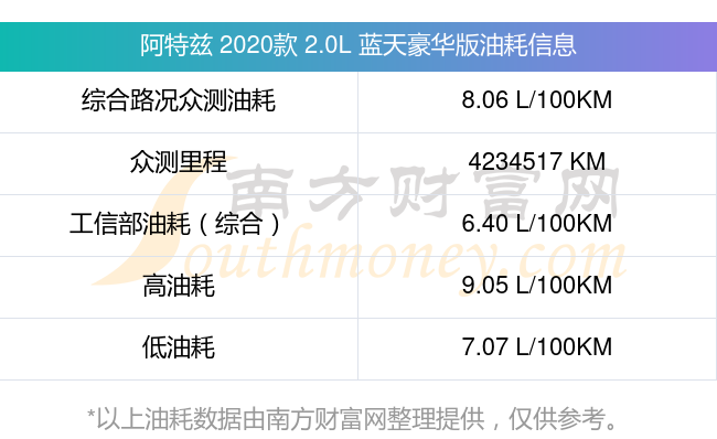 数据仅供参考,一般现实油耗与测试值会有差异,请以实际油耗为准。