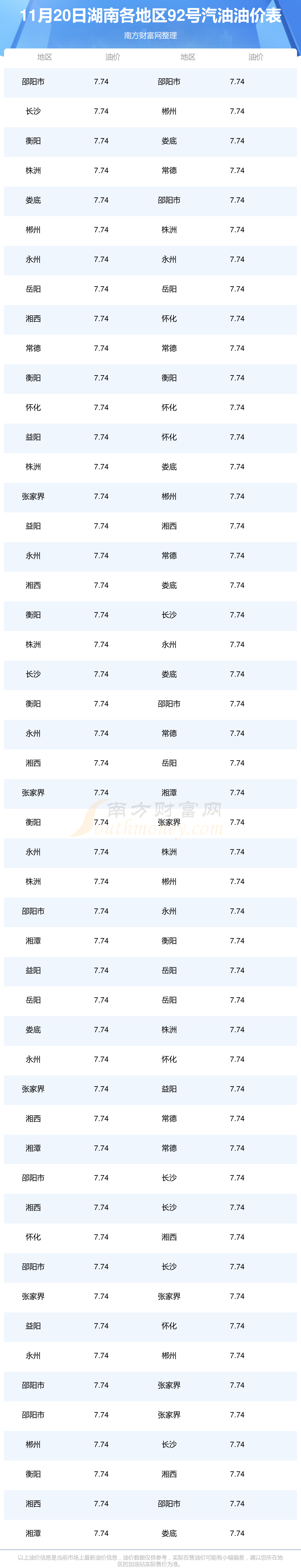 以上数据仅供参考,请以您所在地区的加油站实际售价为准。开云手机web版登录入口发布此信息的目的在于传播更多信息,对使用该油价信息所导致的结果概不承担责任。