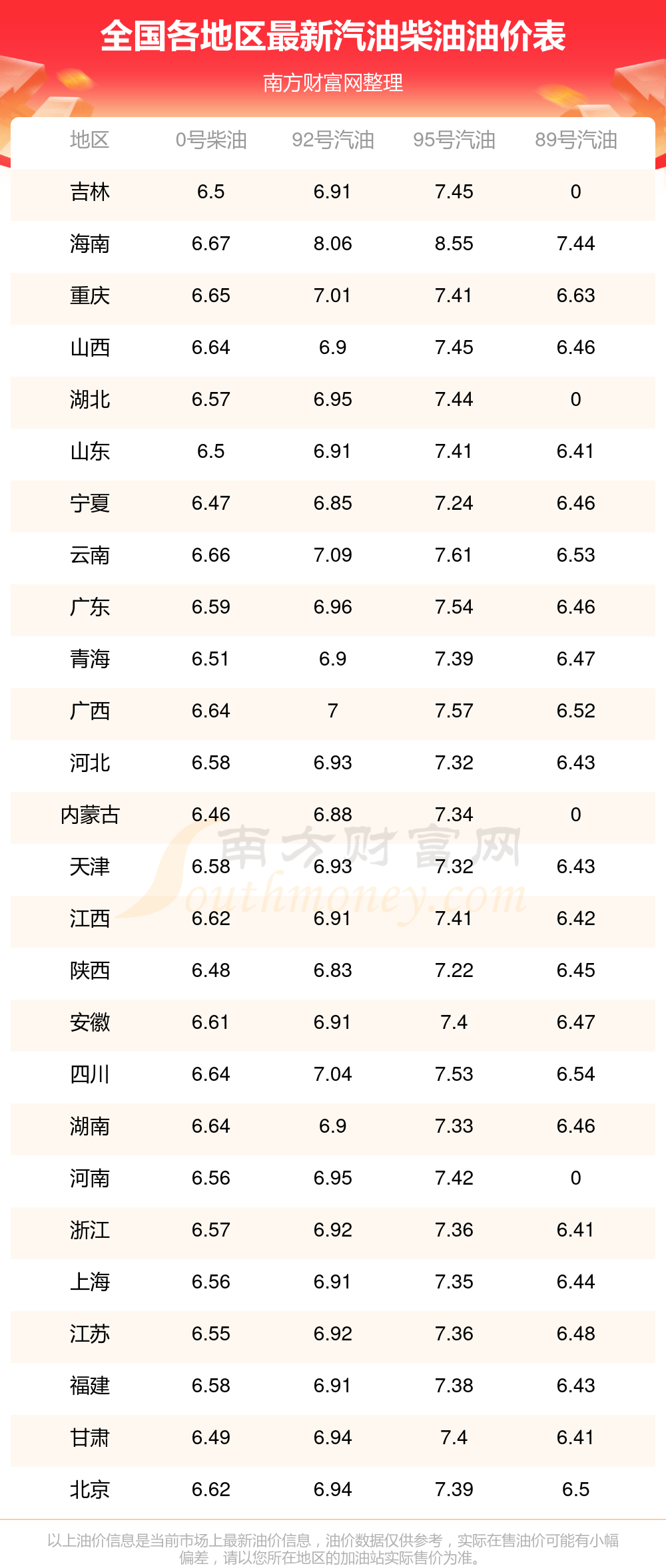 11月20日全国92号汽油最新平均价格为7元每升(根据11月11日调整后的价格),其中92号汽油最高为海南,价格为8.06元/升,全国92号汽油最低为陕西,价格为6.83元/升。下一轮油价调整时间11月24日24时,距离现在还有4.48天。