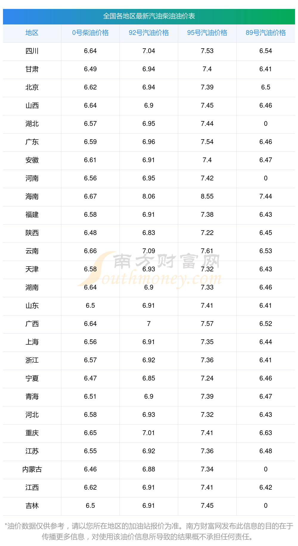 全国89号汽油11月20日最新平均价格为7元/升,调整时间为11月11日。其中,全国89号汽油最低为浙江,价格为6.41元/升;89号汽油最高为海南,价格为7.44元/升。,下一轮油价调整时间11月24日24时,距离现在还有4.47天。