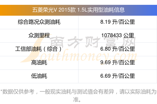 根据车主实测数据,该车型低油耗为6.69L/100km,高油耗为9.69L/100km,综合路况众测油耗为8.19L/100km,工信部综合油耗为6.80L/100km。