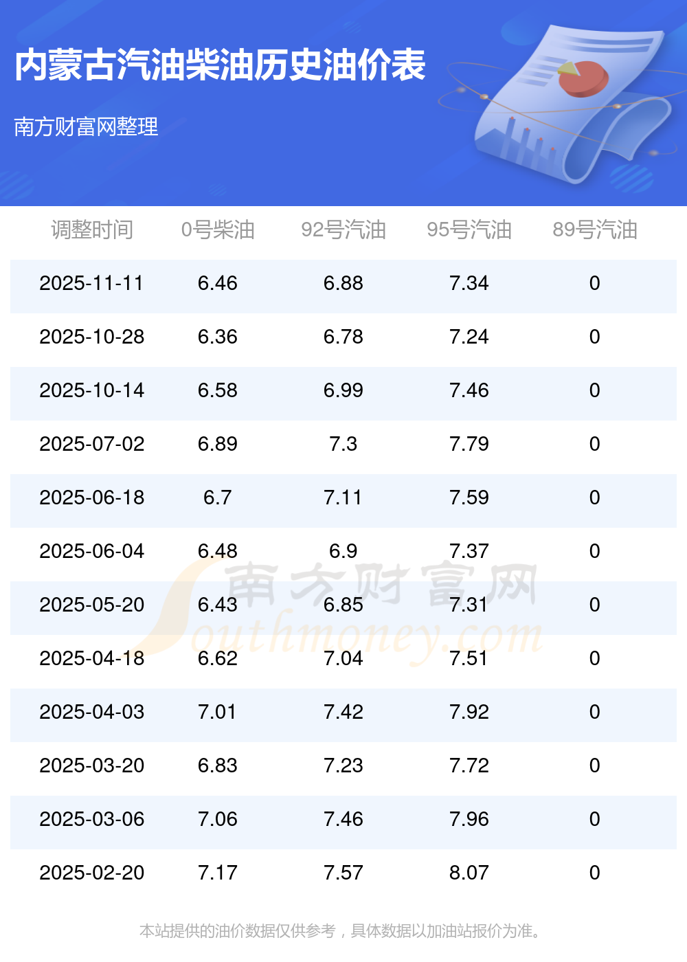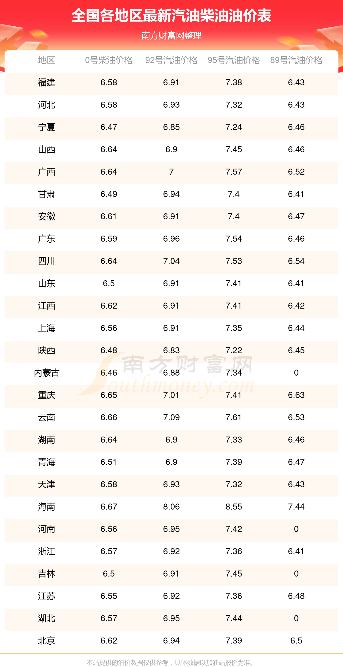 (11月20日)全国油价一览表