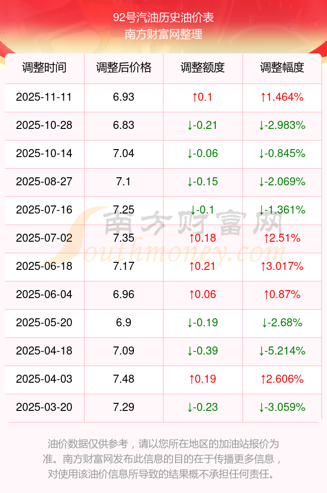 以上数据仅供参考,请以您所在地区的加油站实际售价为准。开云手机web版登录入口发布此信息的目的在于传播更多信息,对使用该油价信息所导致的结果概不承担责任。