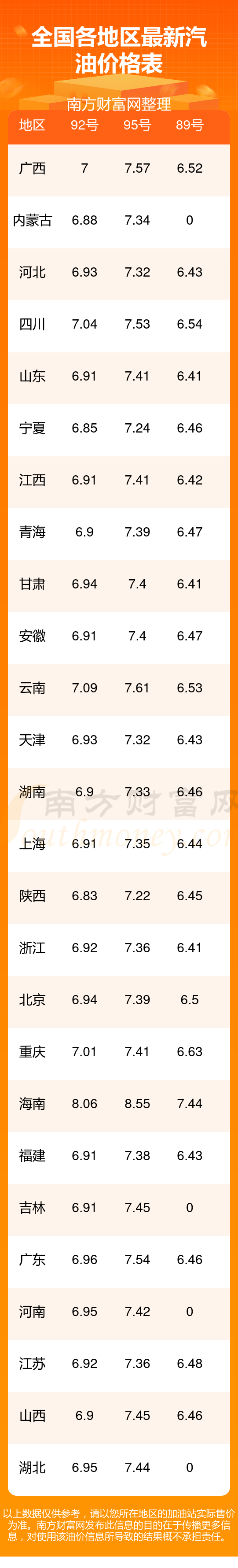 以上数据仅供参考,请以您所在地区的加油站实际售价为准。开云手机web版登录入口发布此信息的目的在于传播更多信息,对使用该油价信息所导致的结果概不承担责任。