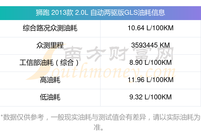 数据仅供参考,一般现实油耗与测试值会有差异,请以实际油耗为准。