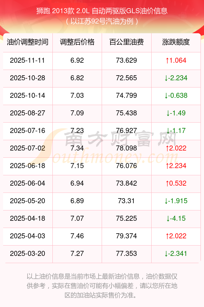 依照11月11日92号汽油最新调整价格6.92元/升来计算(以江苏为例),该车型百公里的平均油费是73.629元,依照上一轮10月28日调整价格6.82元/升来计算,百公里的平均油费是72.565元,对比上一轮多花1.064元,下一轮的油价调整时间11月24日24时。