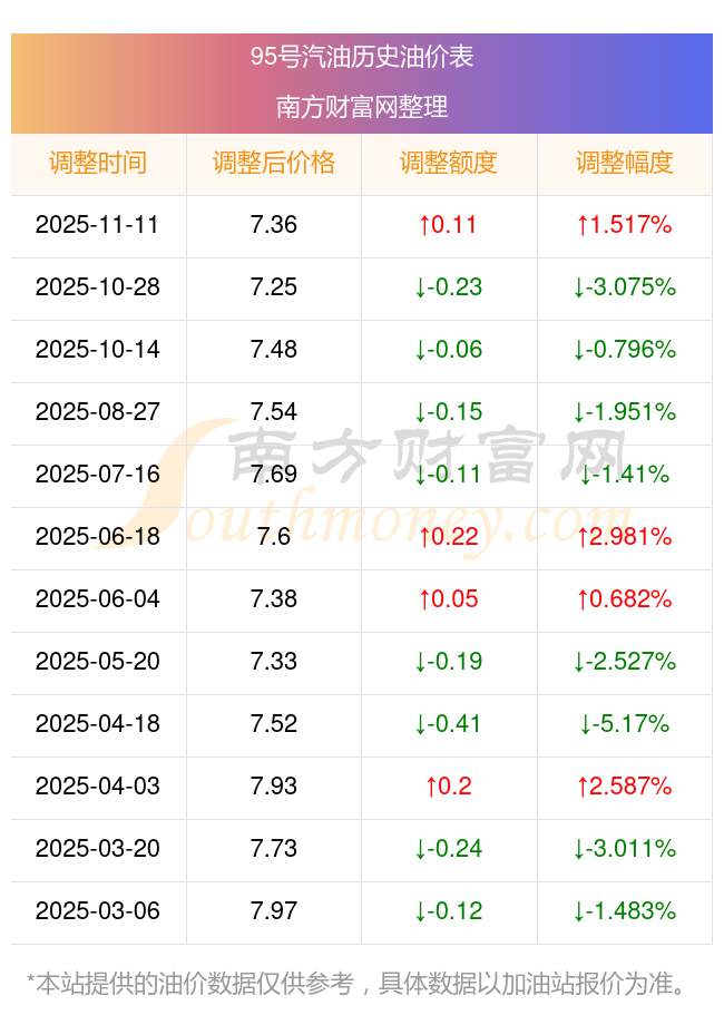 以上油价信息是当前市场上最新油价信息,油价数据仅供参考,实际在售油价可能有小幅偏差,请以您所在地区的加油站实际售价为准。