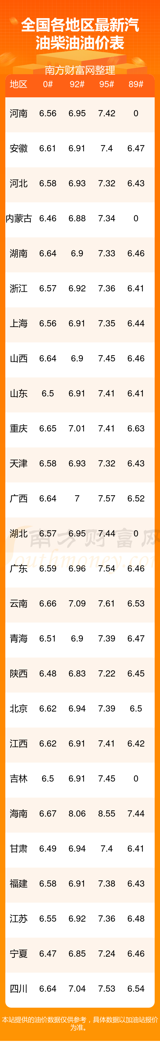 2025年11月20日全国各地汽油价格调整时间及价格一览表