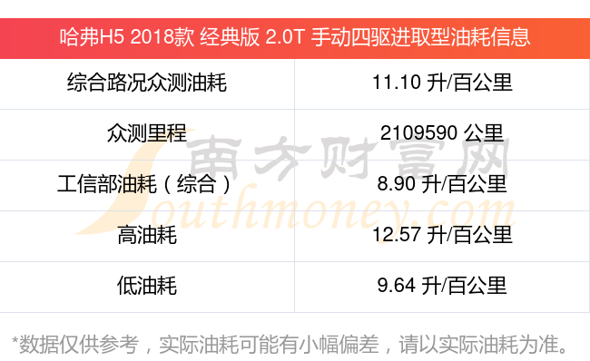 根据车主实测数据,该车型低油耗为9.64升每百公里,高油耗为12.57升每百公里,综合路况众测油耗为11.10升每百公里,工信部综合油耗为8.90升每百公里。