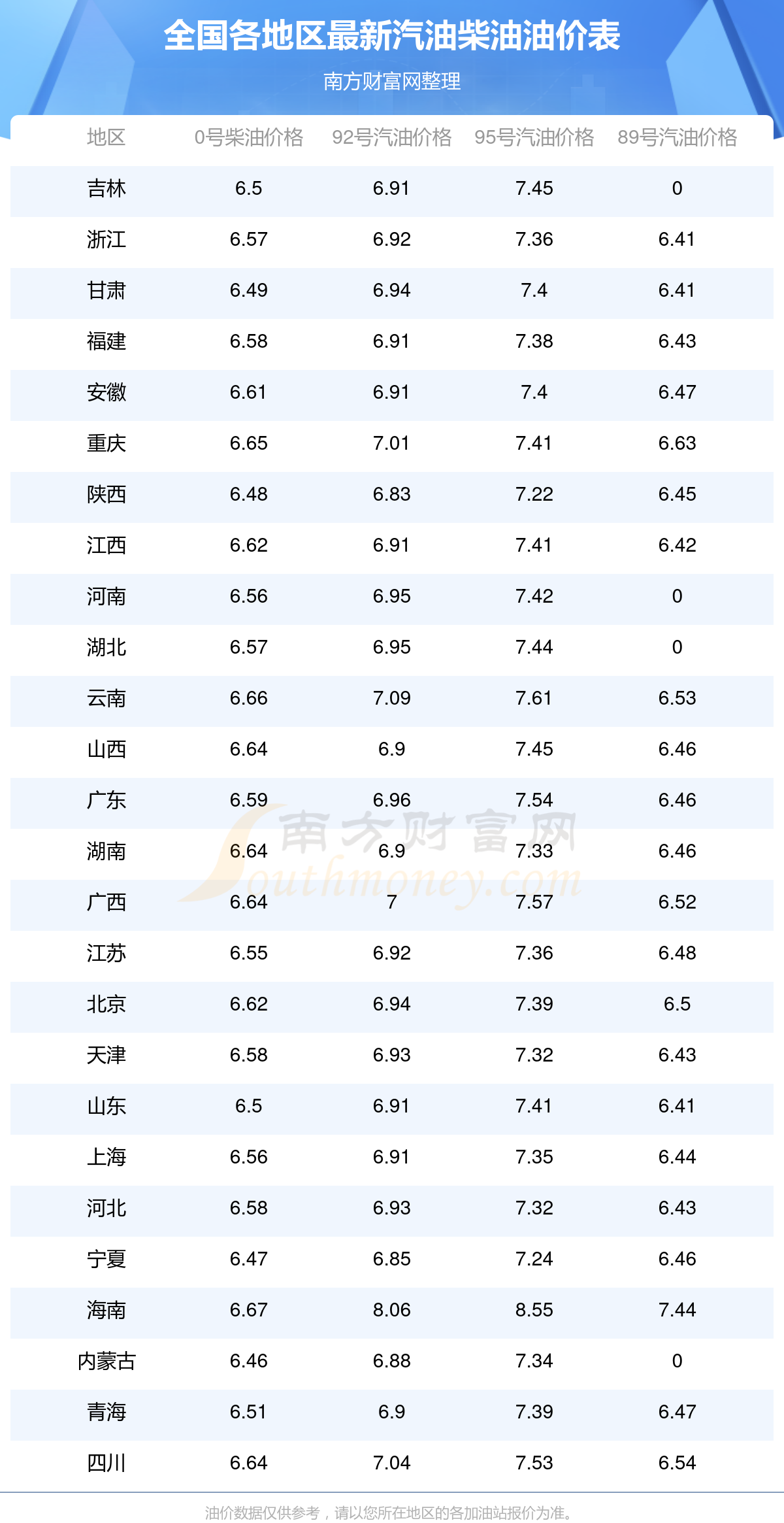全国0号柴油11月20日最新平均价格为7元/升,调整时间为11月11日。其中,全国0号柴油最低为内蒙古,价格为6.46元/升;0号柴油最高为海南,价格为6.67元/升。,下一轮油价调整时间11月24日24时,距离现在还有4.41天。