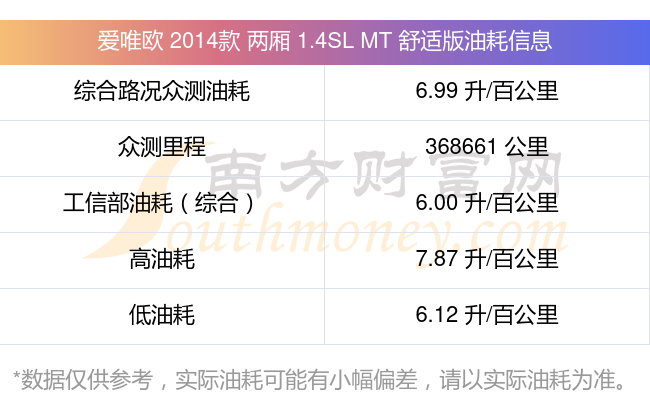 根据多位车主实测得出数据,该车型低油耗为6.12升每百公里,高油耗为7.87升每百公里,综合路况众测油耗为6.99升每百公里,工信部综合油耗为6.00升每百公里。
