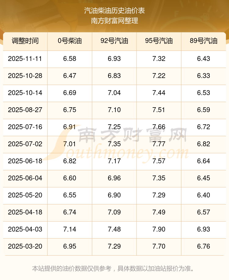 2025年汽油柴油油价调整一览表