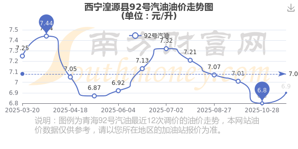 11月20日西宁湟源县92号汽油的价格为6.9元/升,这是11月11日调整后的价格,对比上轮调整增了0.1元,增1.471%。