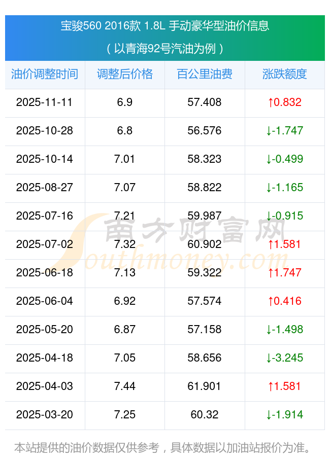 依照11月11日92号汽油最新调整价格6.9元/升来计算(以青海为例),该车型百公里的平均油费是57.408元,依照上一轮10月28日调整价格6.8元/升来计算,百公里的平均油费是56.576元,对比上一轮多花0.832元,下一轮的油价调整时间11月24日24时。