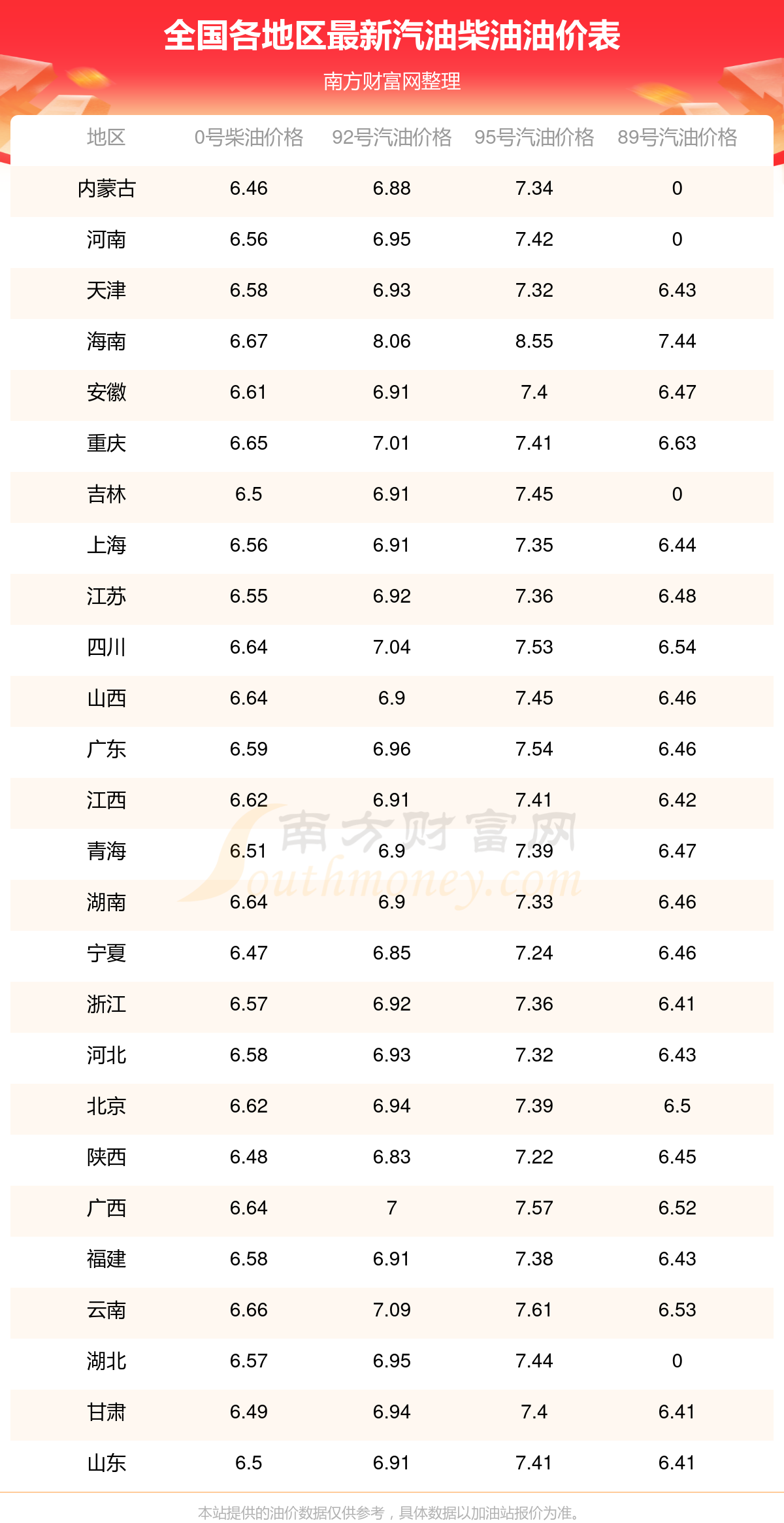 本轮油价的调整时间为11月11日,调整后全国92号汽油平均价格为7元每升,其中,最低为陕西的6.83元/升,最高为海南的8.06元/升。全国95号汽油平均价格为7元每升,其中,最低为陕西的7.22元/升,最高为海南的8.55元/升。全国0号柴油平均价格为:7元每升,其中,最低为内蒙古的6.46元/升,最高为海南的6.67元/升。全国89号汽油平均价格为7元每升,其中,最低为浙江的6.41元/升,最高为海南的7.44元/升。,下一轮油价调整时间11月24日24时,距离现在还有4.36天。