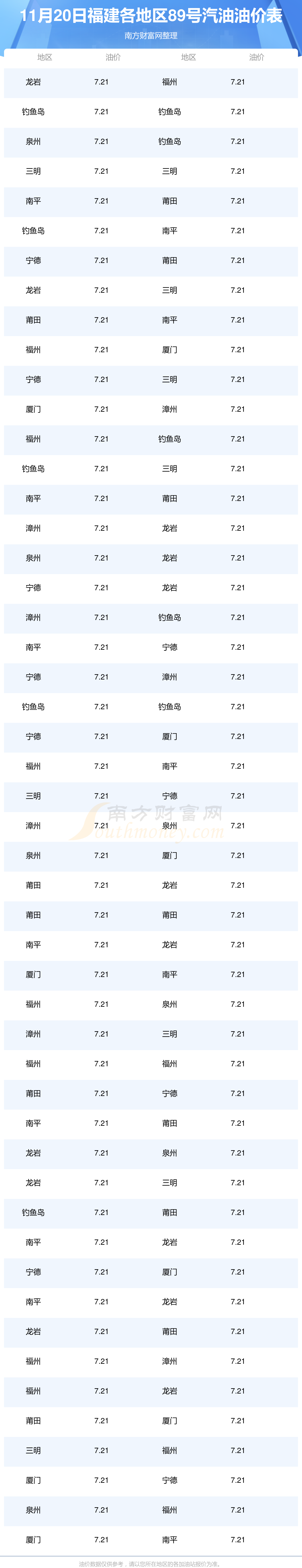 11月20日福建89号汽油的价格是11月11日调整后的价格,为6.43元每升,相对上一轮调整共上升了0.09元。