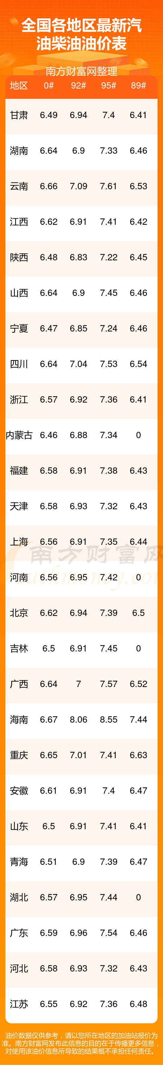 以上数据仅供参考,请以您所在地区的加油站实际售价为准。开云手机web版登录入口发布此信息的目的在于传播更多信息,对使用该油价信息所导致的结果概不承担责任。