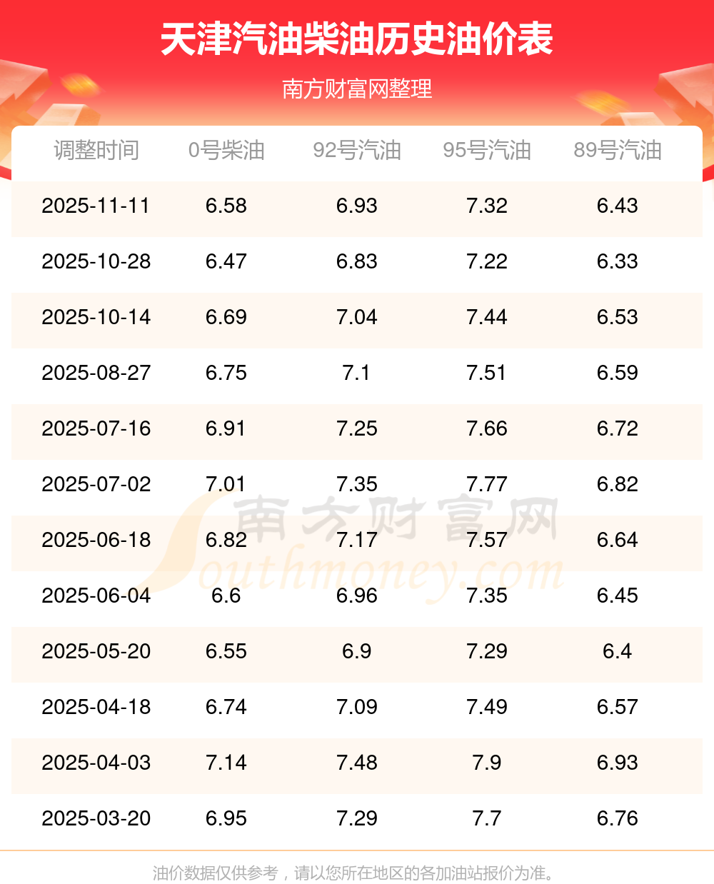 天津汽油柴油历史油价表
