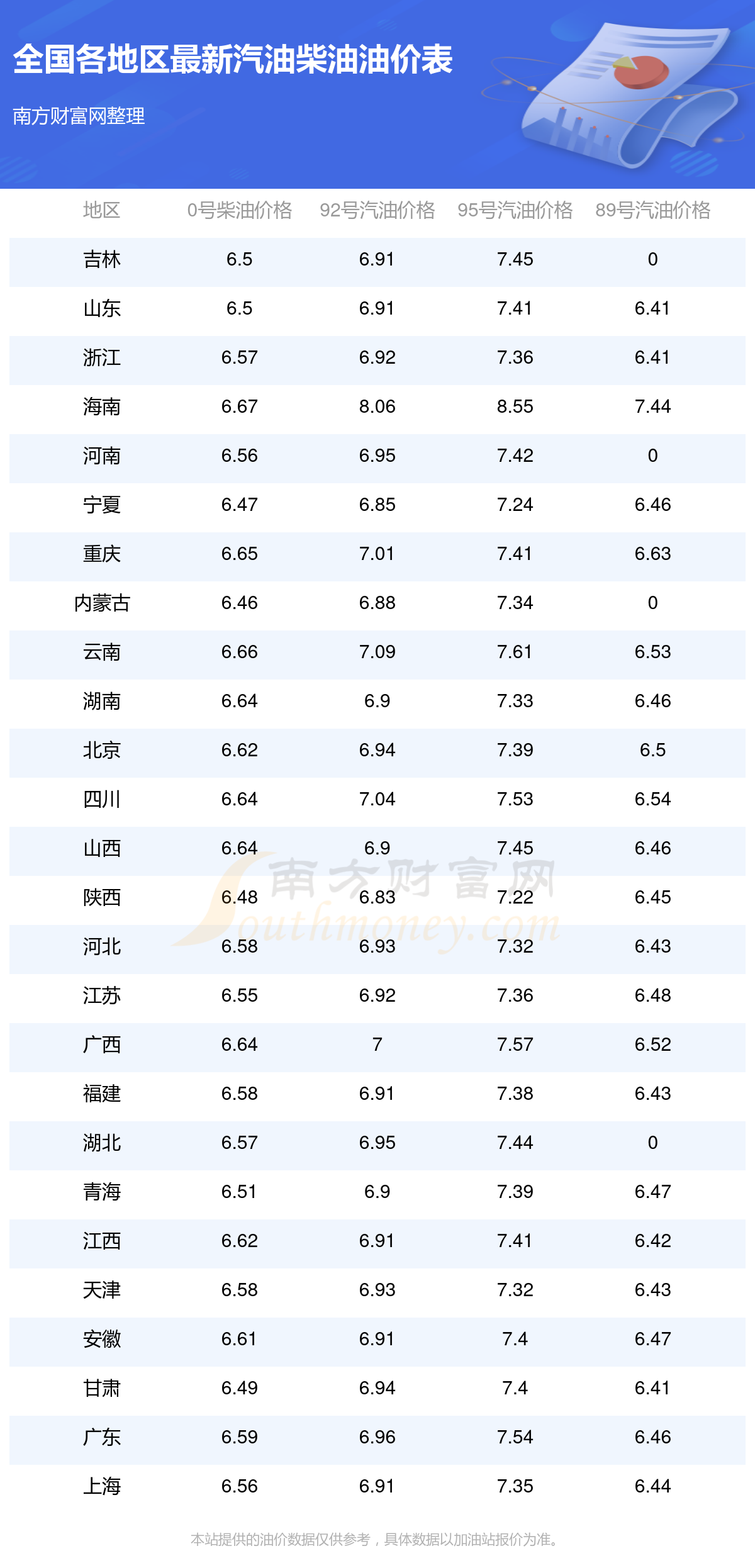 油价数据仅供参考,请以您所在地区的各加油站报价为准。